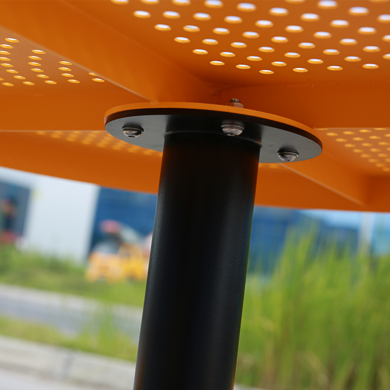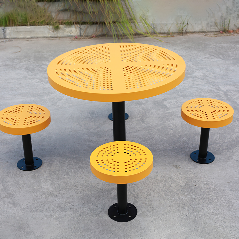Commercial Picnic Table - Perforated Steel TopMade of high-quality metal material and treated with powder coating on the surface, it has excellent rust and corrosion resistance. It can be used for a long time in various outdoor weather conditions, resist sun and rain, and maintain good appearance and structural stability.