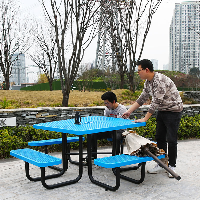 46-Inch Blue Square Picnic Table with Thermoplastic Coating - Arlau