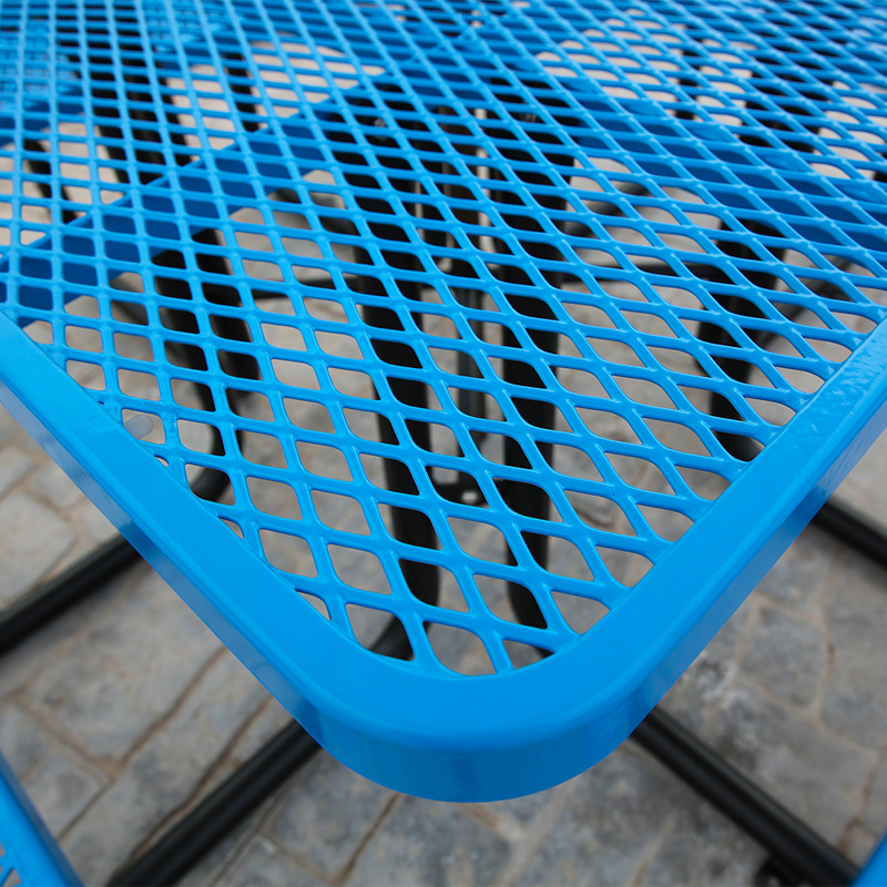 The thermoplastic coating is specially formulated with UV inhibitors to be highly fade-resistant. It is designed to withstand constant sun exposure, keeping the blue color vibrant and preventing the chalky, faded appearance common with lower-quality outdoor finishes.