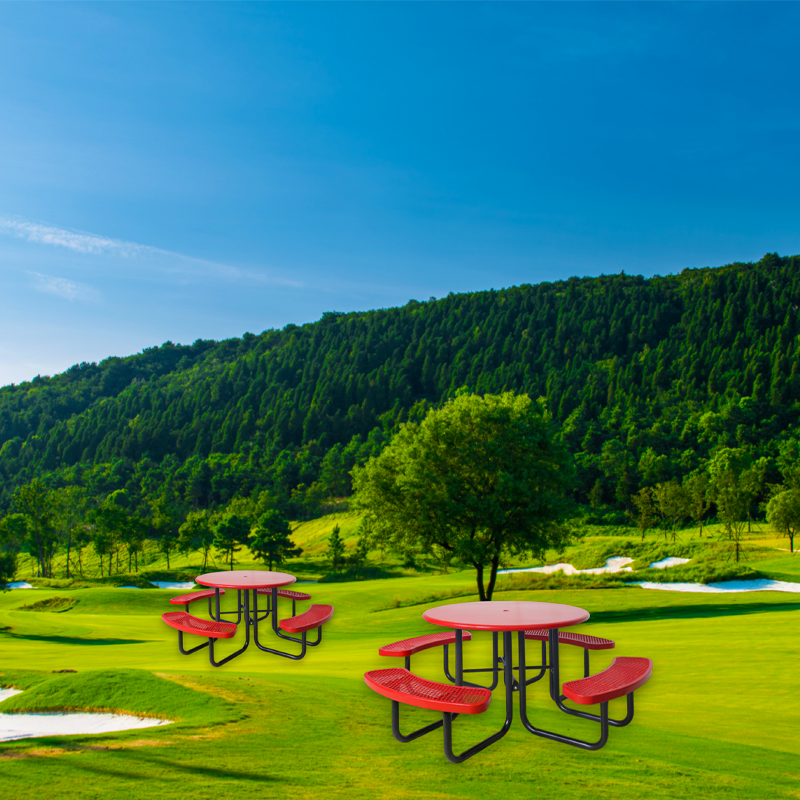 Add a pop of color and lasting durability to your outdoor space with the 46" Round Solid Thermoplastic-Coated Steel Portable Red Picnic Table — a stylish, high-performance solution for picnics, backyard barbecues, schoolyards, parks, and event venues.