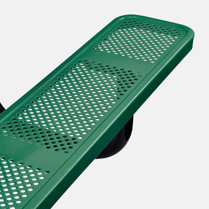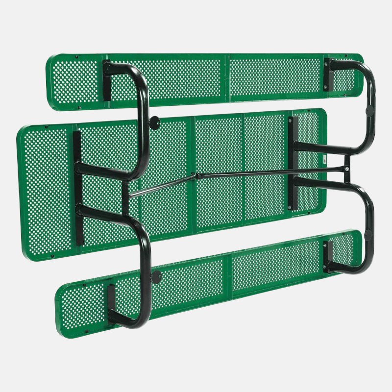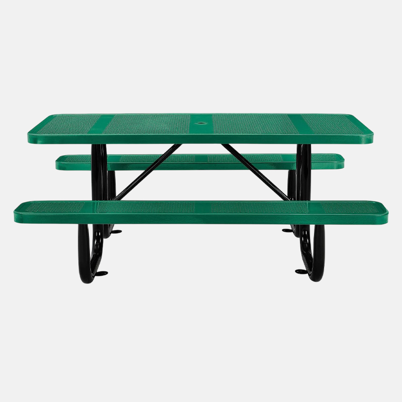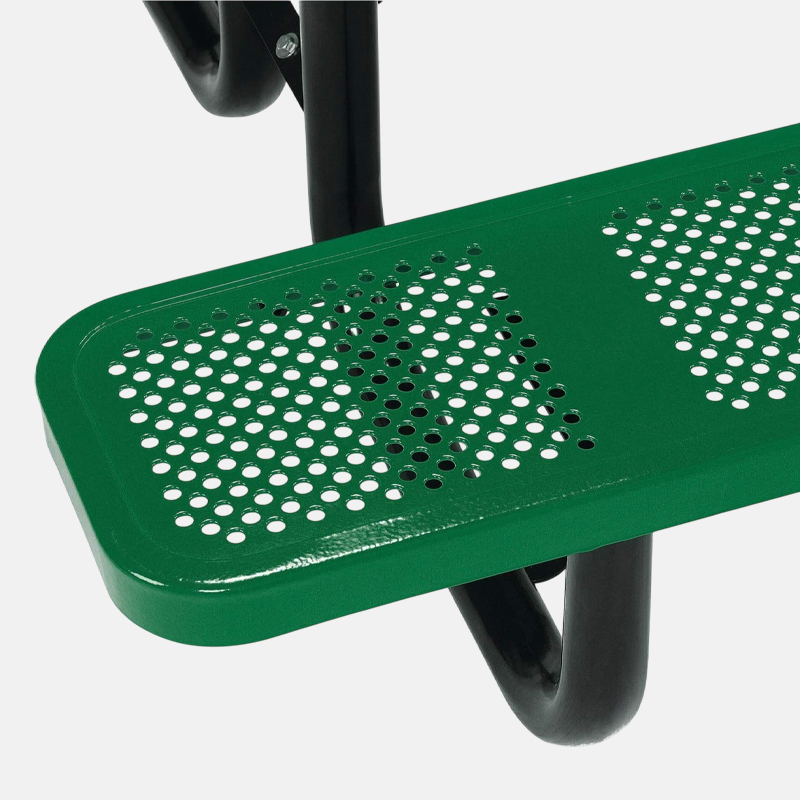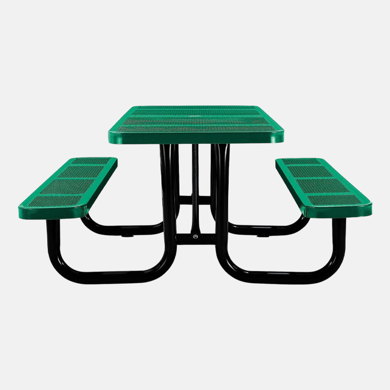 True All-Weather and Vandal Resistance: The combination of perforated steel and thick thermoplastic coating creates a vandal-proof picnic table that resists rust, corrosion, fading, and physical damage in any climate.