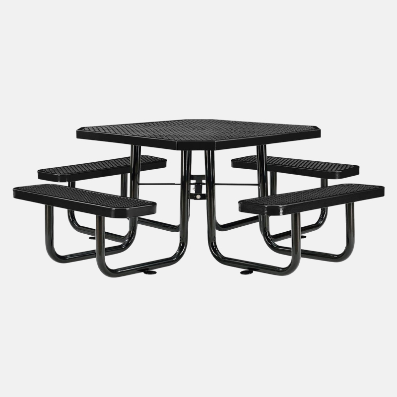 The 46 inch black octagonal metal mesh picnic table from Arlau is designed to elevate outdoor areas in villa communities, residential developments, commercial properties, and landscaped public spaces. Constructed with a reinforced steel frame and finished with a premium thermoplastic coating, this table offers long-lasting strength, weather resistance, and sophisticated visual appeal.