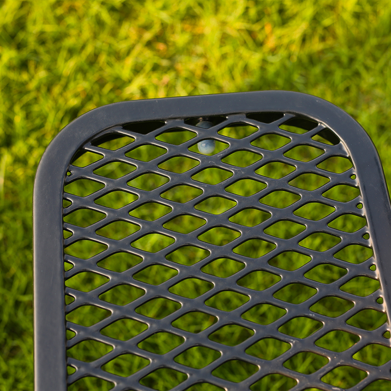 The expanded metal top offers superior practical benefits. It is created from a single sheet of steel that is cut and stretched, resulting in a lighter yet incredibly strong material with no seams or welds that could fail. Unlike solid tops that pool water or wooden tops that rot and splinter, the open mesh allows for immediate drainage and debris fall-through, making it the most hygienic and low-maintenance option for permanent outdoor installation.