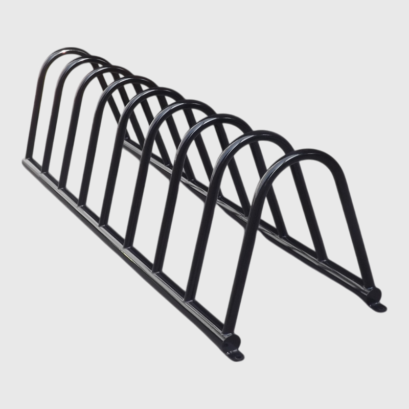 Space-Efficient Public Design: With a low-profile height and a capacity for 10 bicycles, the rack maximizes parking density in high-traffic public areas like sidewalks and plazas without encroaching on pedestrian walkways.
