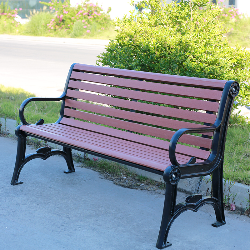 The combination of decorative cast iron and warm plastic wood tones creates a timeless aesthetic suitable for historic gardens, community parks, hotel landscapes, and classic courtyard settings. Available in traditional and vintage styles to match landscape design themes.