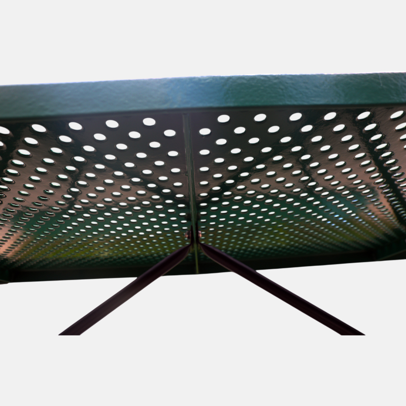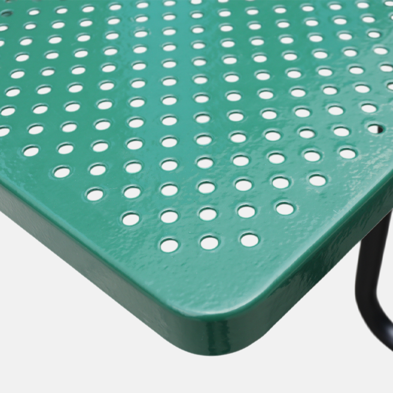 All steel components are protected with DuPont outdoor powder coating or durable thermoplastic finish in green. This creates an impermeable barrier against rust, UV fading, graffiti, and harsh weather conditions, ensuring the table withstands extreme temperatures from -30°F to 140°F. The advanced coating system maintains color integrity and structural performance for decades with minimal maintenance.