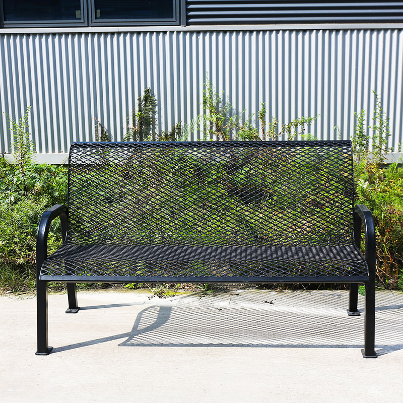 This bench is built for high-traffic commercial environments. Its diamond-patterned expanded metal seat and back are made from #9 gauge steel, offering superior strength and vandal resistance for parks, school yards, and transit areas.