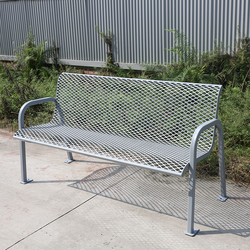 The expanded metal design offers superior strength and vandal resistance compared to wood or plastic slats. Its open pattern allows rainwater and debris to fall through, keeping the seat drier and cleaner while reducing maintenance in public areas.