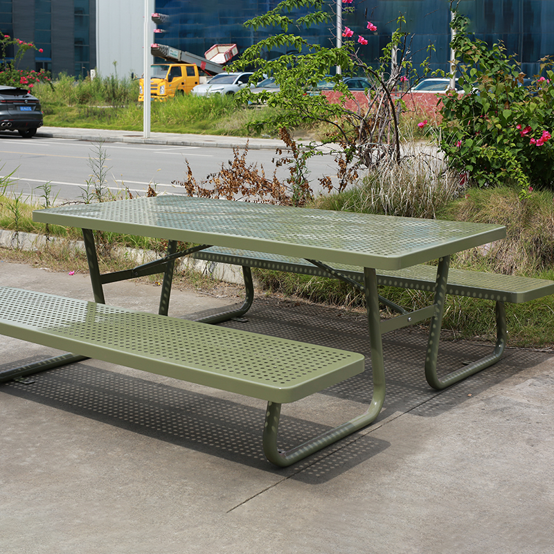 Superior All-Weather Performance: The combination of perforated steel and a heavy-duty powder coat creates a truly all weather picnic table that resists rust, corrosion, and fading in sun, rain, or snow.