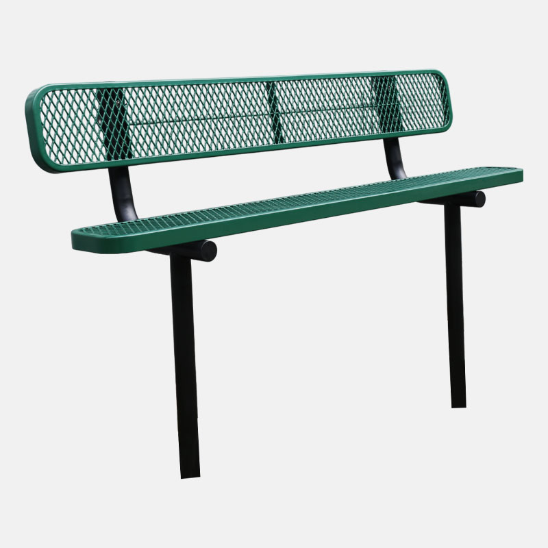 The perforated steel seat offers a cool-to-touch surface that allows for quick rainwater drainage and airflow. The durable green finish retains its color for years, requiring minimal maintenance while providing a comfortable, reliable place to rest.