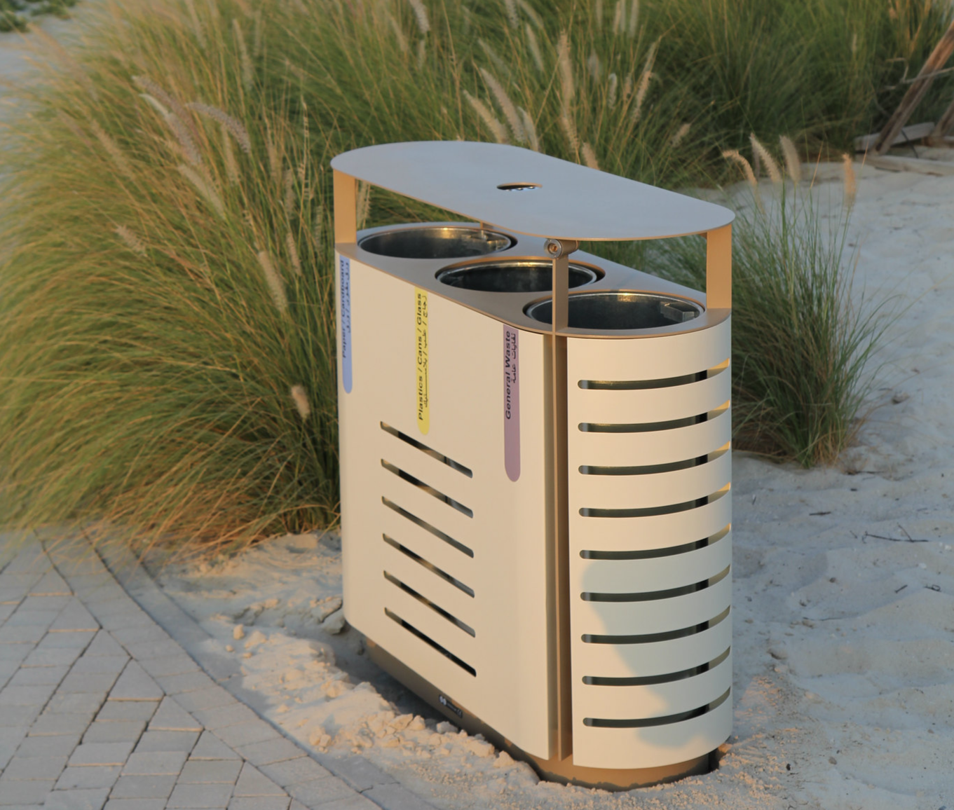Yes. A key feature is full customization. You can specify the number of sections (2 or 3), customize the sorting labels and icons to match local municipal guidelines, and choose bin colors to support clear public communication.