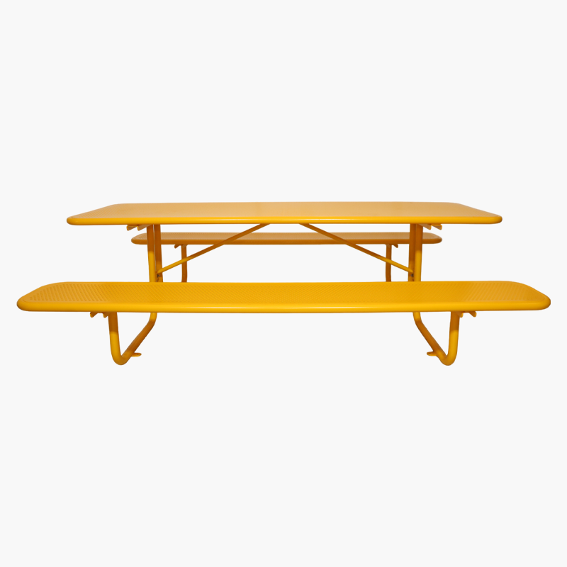 Visual Impact: The bright yellow picnic table color provides high visibility, aids in wayfinding within public spaces, and adds a cheerful, welcoming aesthetic.