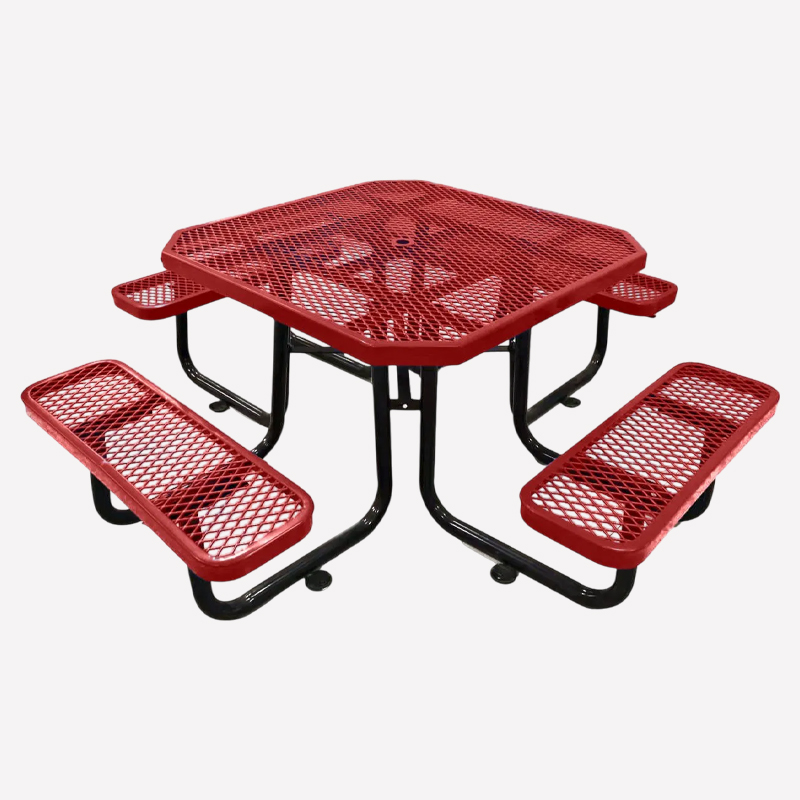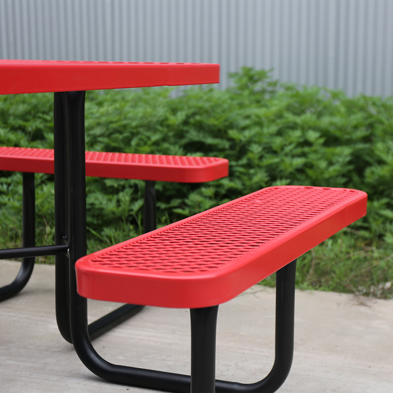 Municipal Parks & Recreational Facilities: This park picnic table is specified for public spaces due to its vandal-resistant design and permanent color finish. Its ability to be configured as an ADA-compliant model ensures inclusivity, while the expanded metal garden furniture top allows for easy maintenance by public works staff, making it a practical and long-lasting choice for community investments.
