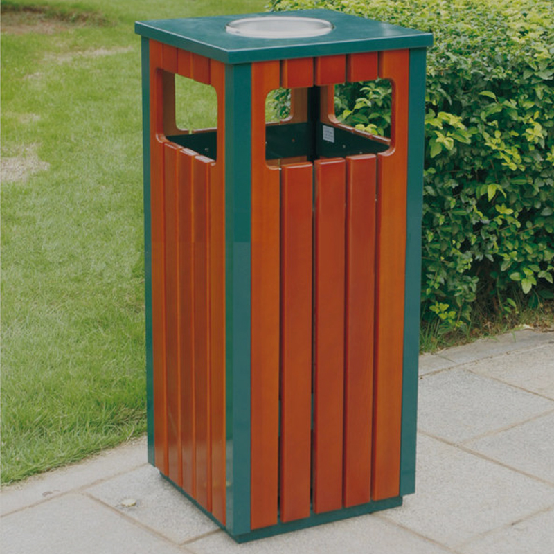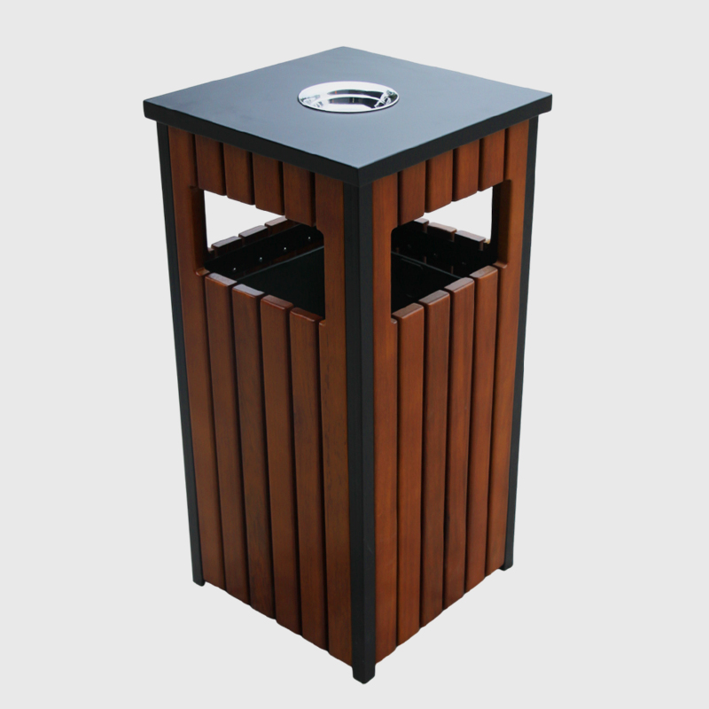 Designed for high-traffic areas, this trash can includes a built-in ashtray. This integrated feature helps keep public spaces cleaner by providing a designated place for cigarette disposal.