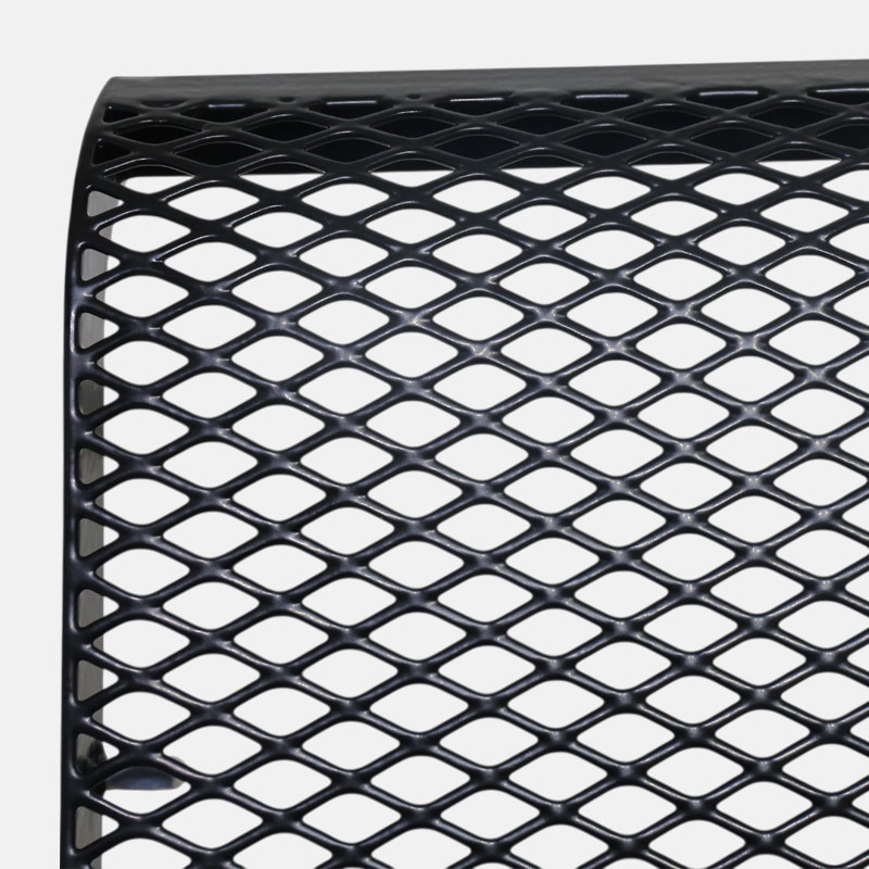 Commercial Bench - UV & Graffiti ResistantThe Yalau 6' Black Plastisol Coated Modern Diamond Outdoor Bench with Backrest is a stylish and resilient addition to any outdoor space — from botanical gardens and city parks to restaurants, plazas, and residential patios. Combining modern design with industrial durability, this bench features a heavy-duty metal mesh construction and a thick plastisol coating that protects against the elements, wear, and vandalism.